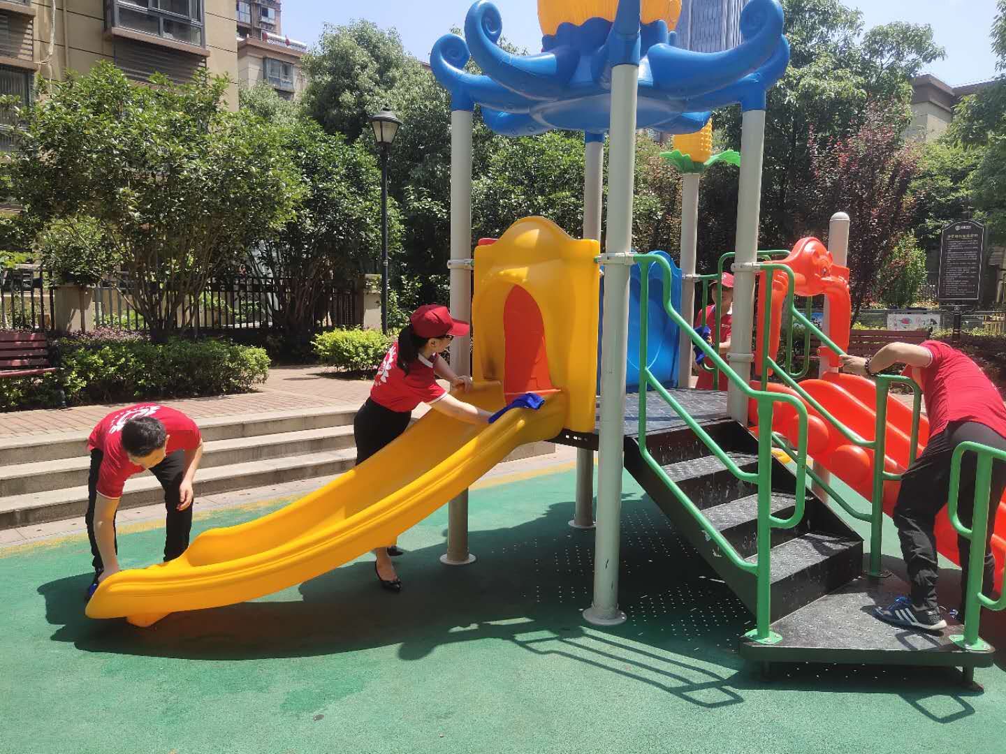 2020年6月6日上午9時(shí),志愿者服務(wù)隊(duì)的隊(duì)員們穿著整齊的服裝,戴著統(tǒng)一的遮陽(yáng)帽,手拿衛(wèi)生鉗和垃圾袋,分別走進(jìn)尚澤大都會(huì)、百樂(lè)門、肥東碧桂園、瑞景家園、瑞景蘭庭等小區(qū),開(kāi)始在小區(qū)的各個(gè)角落清撿垃圾、雜物等,同時(shí)還向身邊經(jīng)過(guò)的業(yè)主朋友們宣講環(huán)保常識(shí),鼓勵(lì)大家從我做起,從保護(hù)身邊的環(huán)境做起。