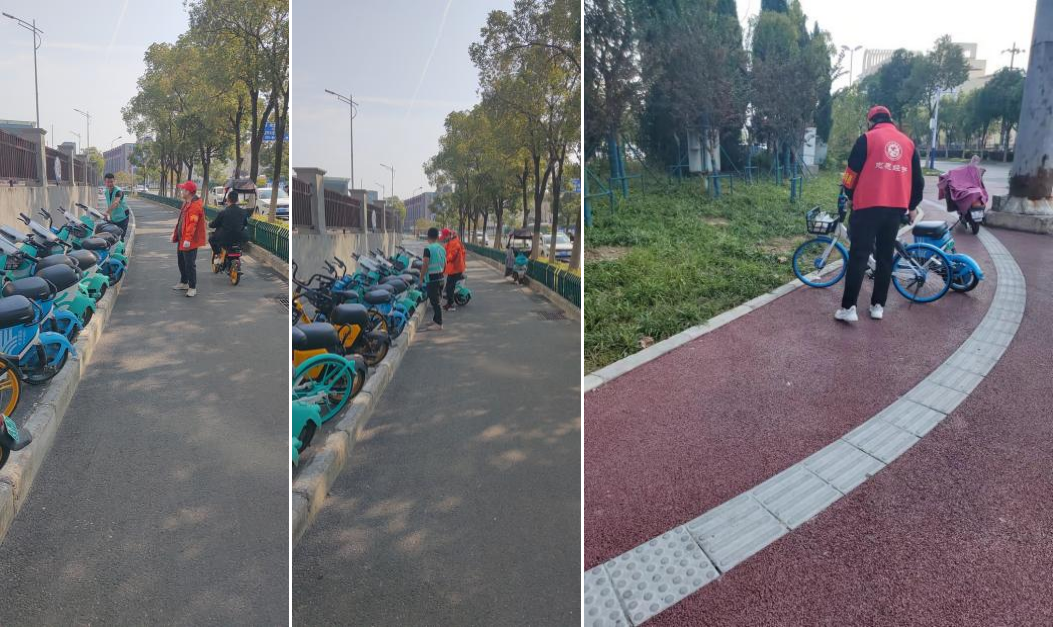 此外,志愿者們還積極開展了共享單車專項整治行動,對轄區(qū)主次干道、背街小巷、居民小區(qū)等零散車輛、破損車輛進行搬離,統(tǒng)一集中到規(guī)定停放的地點并規(guī)范擺放。同時,對騎行人員開展宣傳,呼吁他們文明出行,規(guī)范停車。
