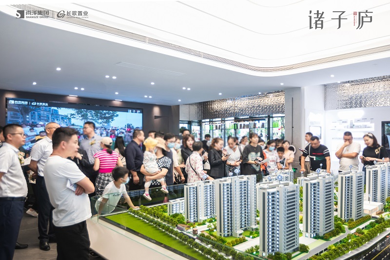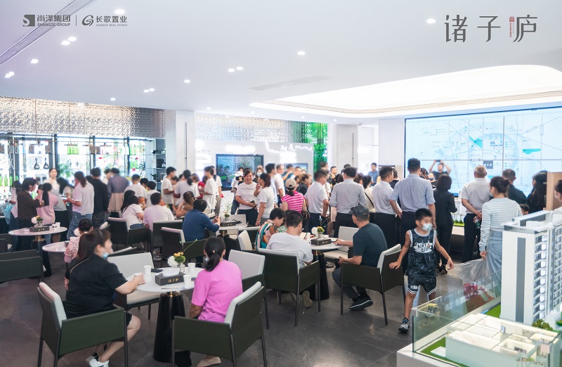 在眾嘉賓的熱烈期盼中,尚澤與長歌的幾位領(lǐng)導(dǎo)共同登臺,為諸子廬森居生活美學(xué)館開放剪彩,這場矚目已久的示范區(qū)開放儀式正式開始?;顒蝇F(xiàn)場匯聚了各行各業(yè)的參觀者,共同見證這一令人激動的時刻。
