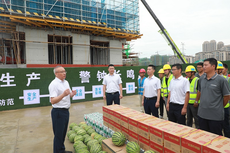 入伏以來,氣溫攀升。尚澤集團(tuán)一線員工們?nèi)詧?jiān)守崗位、辛勤付出,經(jīng)受著高溫的考驗(yàn)。為切實(shí)做好防暑降溫工作,保證員工身體健康及夏季安全生產(chǎn)工作的開展,7月14日,集團(tuán)總裁王軍和審計(jì)監(jiān)察委員會(huì)副主任戴正春分別帶隊(duì),前往項(xiàng)目建設(shè)現(xiàn)場、瑞康物業(yè)和琪瑞飲服,開展高溫慰問活動(dòng),為烈日下堅(jiān)守崗位的一線員工送去關(guān)愛和問候。